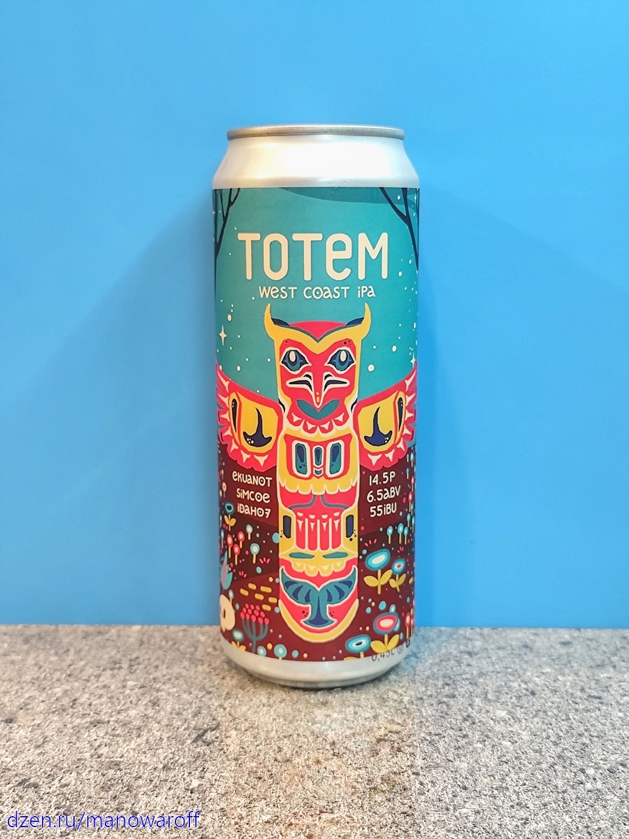 Среди многочисленных духов Западного побережья в создании этого "неоклассического" IPA нам более всего сопутствовал дух Совы. Все знают, что Сова - это, прежде всего, про мудрость, но в нашем "Тотеме" важнее интуиция и магия - самые важные после хмелей Ekuanot, Simcoe и Idaho 7 ингредиенты. Идти по проторённой тропинке - не наш метод, поэтому мы вышли к побережью сквозь чащу секвой. Моя банка пива из первой партии, датирована 25 февраля, а вскрыл я ее 13 мая. Срок годности составляет 360 суток при хранении в холодильнике. ТТХ: Пиво прозрачное, пены весьма много, стойкость средняя. В аромате цитрусы, тропики, сосна, ягоды, папайя и душистый перец. Вкус сладкий, фруктово-ягодный, с