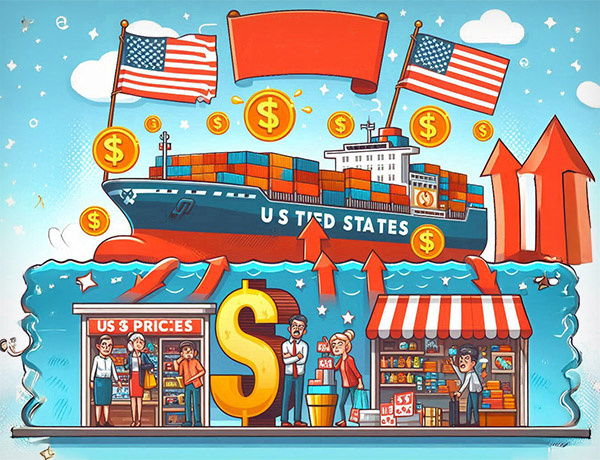 Тарифы – это налоги на товары, поступающие из других стран. Когда эти налоги растут, предприятиям становится дороже привозить продукцию из-за рубежа. Эти более высокие затраты обычно в конечном итоге перекладываются на потребителей, а это означает, что цены в магазинах растут.