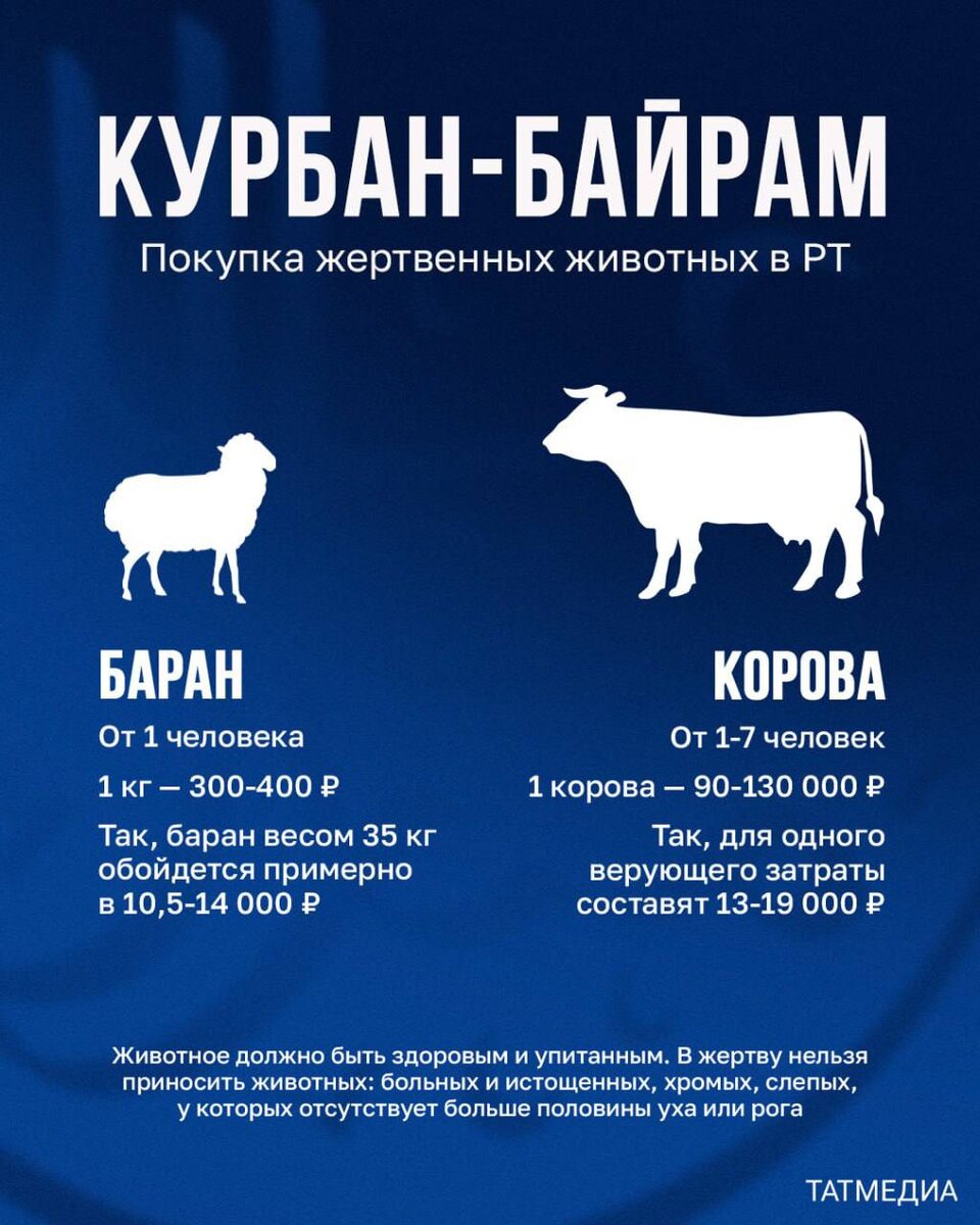 В ответ на пост ☪️🐏 Курбан-байрам: во сколько обойдется покупка барана или коровы в Татарстане? В преддверии праздника многие мусульмане республики приобретают баранов или коров для жертвоприношения. Рассказываем, сколько стоит такое животное в 2025 году. @tatmediaofficial