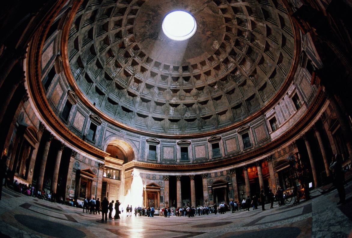 #путешествиядизайнера #рим2025 #историядизайна Интерьер Пантенона Внутри Пантеон состоит из двух залов – передний зал (проходной) и круглый зал. При отсутствии окон здание обладает хорошей вентиляцией и акустикой, а во внутреннем зале могут находиться одновременно до двух тысяч людей. В переднем зале расположены колонны из серого и красного гранита. Когда-то здесь находились статуи Августа Октавиана и Марка Агриппы. Вход в круглый зал отгорожен массивными бронзовыми дверями, сохранившимися еще с античных времен. Стены и пол также отделаны мраморной облицовкой и плитами. В стенах большого зала расположены восемь ниш – вход и ниши, в которых изначально располагались статуи семи основных богов древних римлян. Теперь же в этих нишах расположены статуи христианских святых. Пантенон сейчас- это действующий храм. Поражает, конечно, насколько был уровень развития архитектуры в эпоху Римской империи!