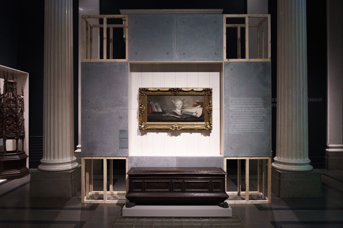 Совместная выставка ГМИИ им. А.С. Пушкина и Русского музея «Подвиг музея», приуроченная к 80-летию Победы в Великой Отечественной войне, разнообразна по составу художников. На первый взгляд, все представленные художники отличаются между собой: они относятся к разным эпохам, стилям, представляют разные национальные школы. Но тяжелые военные годы связали между собой столь непохожих друг на друга мастеров. Выставочный проект не только открывает имена художников блокадного Ленинграда для массового зрителя, но и вписывает в контекст Второй мировой войны произведения старых мастеров. Важная веха в истории музея во время войны – эвакуация. Более 108 тысяч экспонатов были отправлены в три очереди в эвакуацию в Новосибирск и Соликамск. На выставке воспроизведено как произведение «Натюрморт с атрибутами искусств» известного французского живописца эпохи Просвещения Жана-Батиста Шардена было упаковано. Один из разделов проекта повествует о выставках, которые проводились во тяжелые годы войны, в то