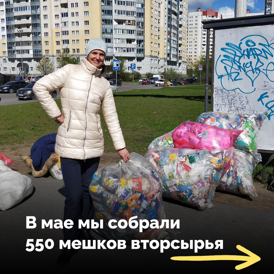 На майской акции мы вместе с вами собрали и отправили на переработку 550 мешков вторсырья.