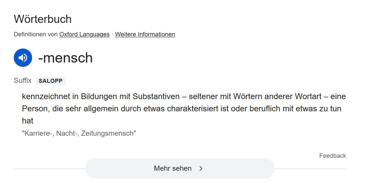 "Человек! Человек! Почки один раз царице!" 👔 Когда-то в России прислугу или официанта могли назвать просто "человек". Не пытайтесь повторить сейчас 😆 Но это не все обычные значения слова "человек" на сегодня. Обратимся к немецкому языку! Там компонент -mensch лепят к очень разным словам и получают: Baumensch, Vereinsmensch, Bühnenmensch, Parkettmensch... А в чём суть? ◀️ Во-первых, в разговорной речи так можно обозначить человека по профессиональной принадлежности. Parkettmensch – паркетчик Baumensch – строитель, мастер Medienmensch – работник масс-медиа (медийщик??) ◀️ Во-вторых, так мы можем описать человека по одной какой-то его характеристике Bauchmensch – человек, полагающийся на интуицию (т.е. Bauchgefühl) Katzenmensch – любитель котиков Vereinsmensch – любитель быть в компании или быть участником сообществ (Verein'ов) 💡 Встречали такое в речи? 🔡 Учиться с нами
