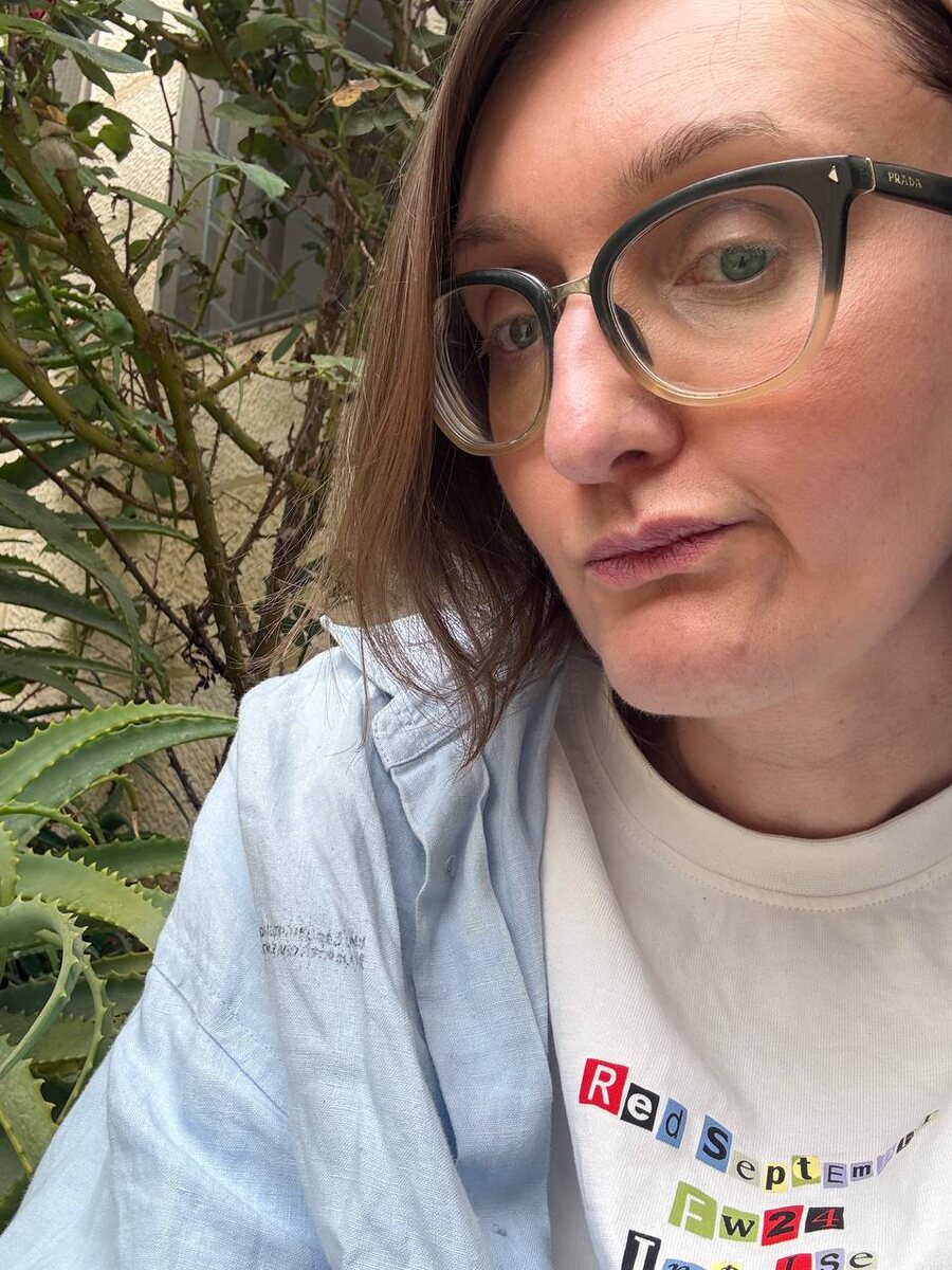 Лицо человека, который решил погладить льняную рубашку Pangaia и в итоге выяснил массу всего интересного про их краски (слишком поздно, увы)😬 А вела бы рубрику #care, как Лена @Будни Гальяно, возможно, знала бы. Но теперь несу вам. Оказывается, на рубашках Pangaia фирменный текст печатают специальными экологичными Air-Ink® (чернилами из улавливаемых частиц выхлопных газов), это водная краска + связующий полимер, а не привычная вышивка или термо-винил. Лён любит жар, его гладят на 200°C+ с паром, а этот водный принт рассчитан максимум на 110–150°C. Поэтому краска у меня буквально растворилась, даже не размазалась, как резиновые принты, а просто превратилась в прах 🤷🏻♀️ Сами Pangaia, надо сказать, у себя на сайте предупреждают, что гладить по принту нельзя и вообще гладить надо на режиме хлопка без пара, а еще нельзя сушить на солнце, ультрафиолет и тепло одновременно ускоряют старение краски. В общем, как обычно, за прогрессивные эко-технологии приходится платить не только день