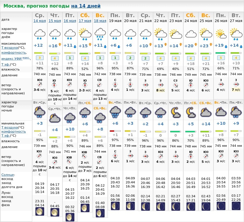 Прогноз погоды на 14 дней