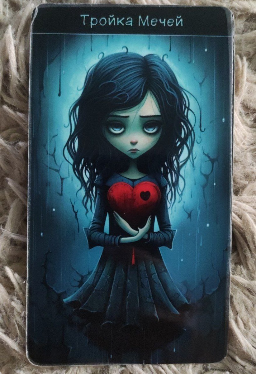 ПАРАНОРМАЛЬНОЕ ЯВЛЕНИЕ Посмотрим 👀 на 3 мечей 👀 Классика - боль, разочарование и т.п... Как же 3М может говорить о призраке? Сердце - наша душевная часть, а мечи - рациональность, факты (в классике горькие факты пронзают сердце). В нашем случае, М недавно понял/принял, что он умер и а#уел. Плюс к этому, 3М (ментал, астрал) может говорить о видениях, ощущениях чьего-то присутствия. Ещё, как вариант, он не может уйти (по повешенному можно предположить, что он суицидник), поэтому переживает свою боль за то, что сделал. Сделать разбор других карт данного расклада?