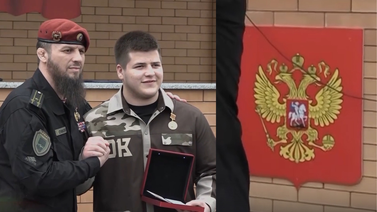 Думаю, что никто бы даже не обратил внимание на то, что сын Рамзана Кадырова, Адам Кадыров, получает с трудом исчисляемую медаль - это уже стало предметом всевозможных шуток в российском сегменте Интернета. Но на этот раз украшением церемонии стал искаженный герб России - без крестов.