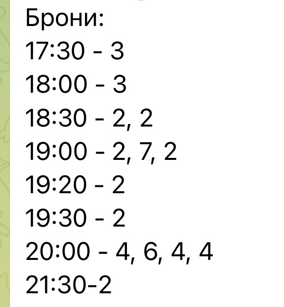 У нас в шараге приблизительно то же, вот типичный список броней на вечер: