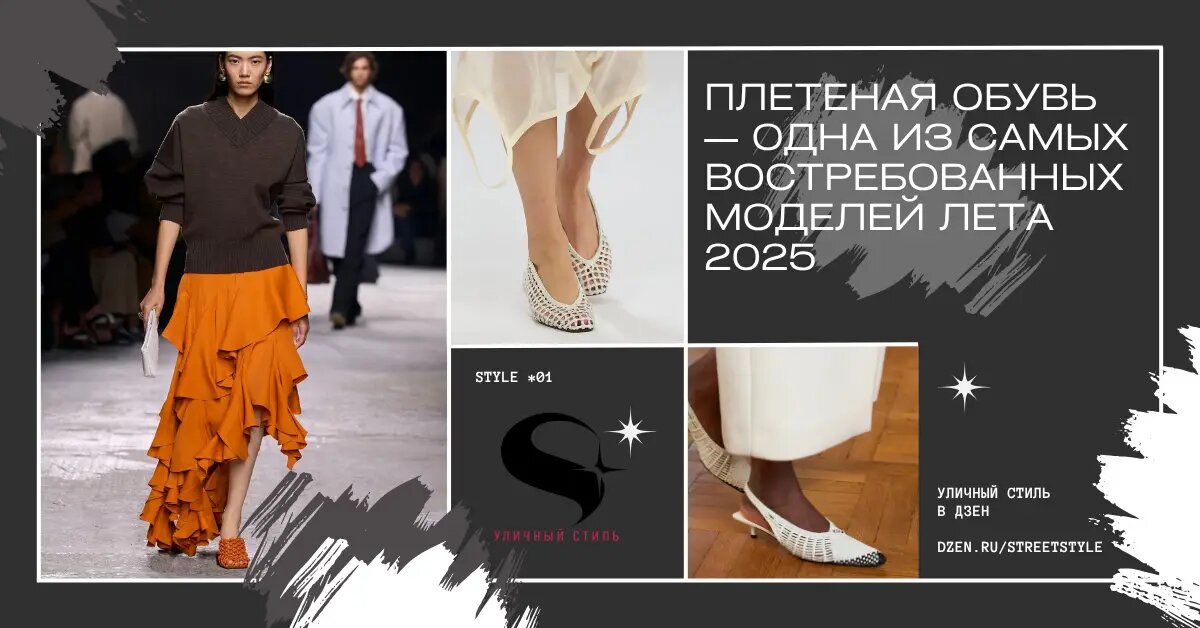 Плетеная обувь, наполовину закрывающая щиколотку, стала одним из главных трендов сезона весна-лето 2025. Ее сложная фактура напоминает изделия ручной работы и традиционное мастерство, а ее форма и визуальный образ представляют собой современную интерпретацию классического ретро-стиля. Плетеная обувь возвращает в моду эстетику изделий ручной работы и в то же время выглядит удивительно элегантно. В этом сезоне дизайнеры предлагают различные вариации на тему плетения, начиная с классической кожи, заканчивая различными переработанными материалами. Например: Bottega Veneta представила в своей коллекции весна-лето 2025 года обувь с массивным плетением и квадратным мыском, в то время как Fendi предлагает более тонкую обувь узкой формы. Габриэла Херст создала изящную классическую обувь. Элегантную обувь из тонкого плетения можно также найти в весенне-летней коллекции Jacquemus. Stella McCartney, Chloé и многие другие известные бренды из весенне-летней коллекции 2025 года предлагают обувь сам