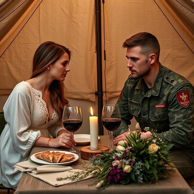 Катя осторожно положила букет на край стола (про вазу Жигунов не подумал), оглядывая убранство палатки. Свечи мерцали в тихом воздухе, отбрасывая золотистые блики на стены из плотной брезентовой ткани. Всё это выглядело нереально – как будто они не на войне, а где-то далеко от снарядов и крови, в другом мире, где есть место красоте и уюту.