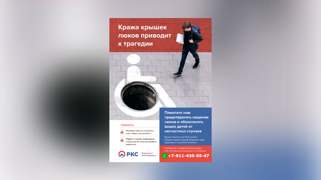 Группа компаний «РКС-Петрозаводск» напоминают горожанам об опасности открытых канализационных люков и алгоритме действий при их обнаружении. По всей России периодически фиксируются случаи падения людей — как взрослых, так и детей, а также домашних животных — в открытые колодцы. Чаще всего причиной этому является желание недобросовестных граждан заработать на сдаче краденных люков в пункты приема металлолома.