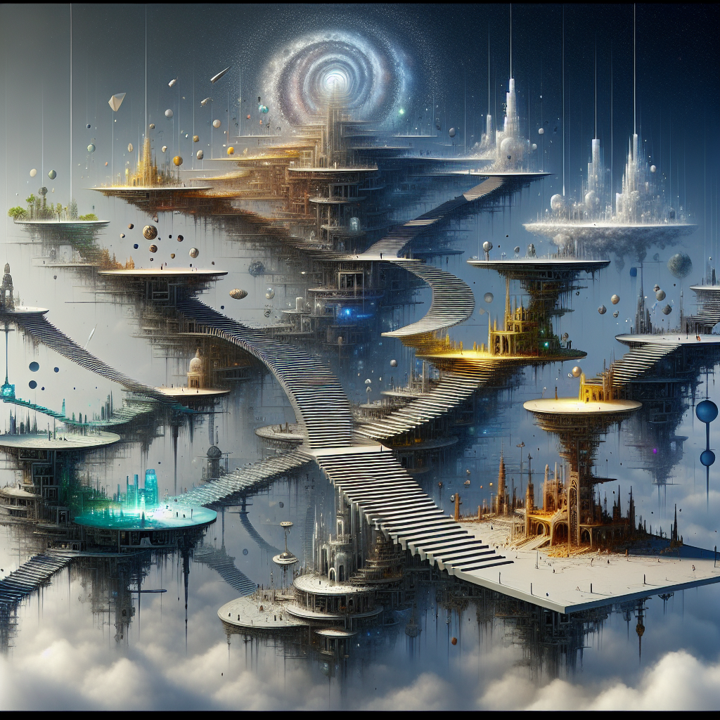 Этот мир — бесконечная лестница. Каждая ступень — маленький мир со своей гравитацией, временем, законами. Некоторые ступени тёмные и холодные — затопленные старым светом, другие обрастают городами, дышащими дождём. Путешествие вверх занимает жизни, но никто не знает, что наверху, ведь каждый шаг сотрясает всё, что ниже. Иногда лестница уходит вбок, раздваивается, ведёт в воспоминания и сны. Те, кто живут на ней, верят, что если пройти десять миллионов ступеней, откроется доступ к Миле — ступени, где начинается желание. И только она ведёт в твоё настоящее.