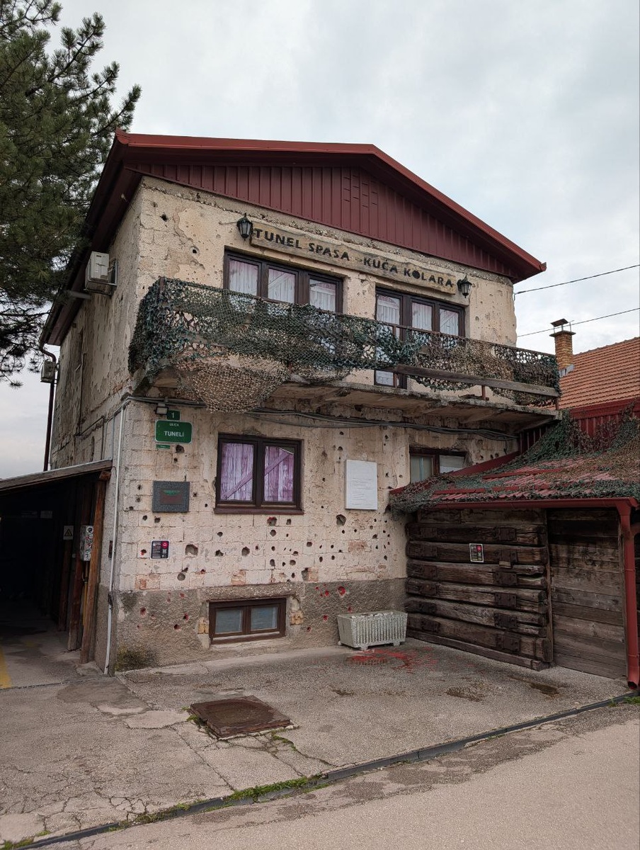 Сараево. Босния и Герцеговина. Туннель спасения. 25.04.2025 Рассказывает Саша: "Первым делом в Сараево заехал в музей Туннель спасения (Сараевский туннель). Во время гражданской войны в 1992-1995 при осаде Сараево через него снабжался город едой, водой, медикаментами. Весь туннель длиной почти 800 метров проходил прямо под взлетно-посадочной полосой аэропорта. Сейчас восстановлено (отреставрировано) около 100 метров и сделан музей с историей строительства тоннеля, его использования, и осадой Сараева в целом».