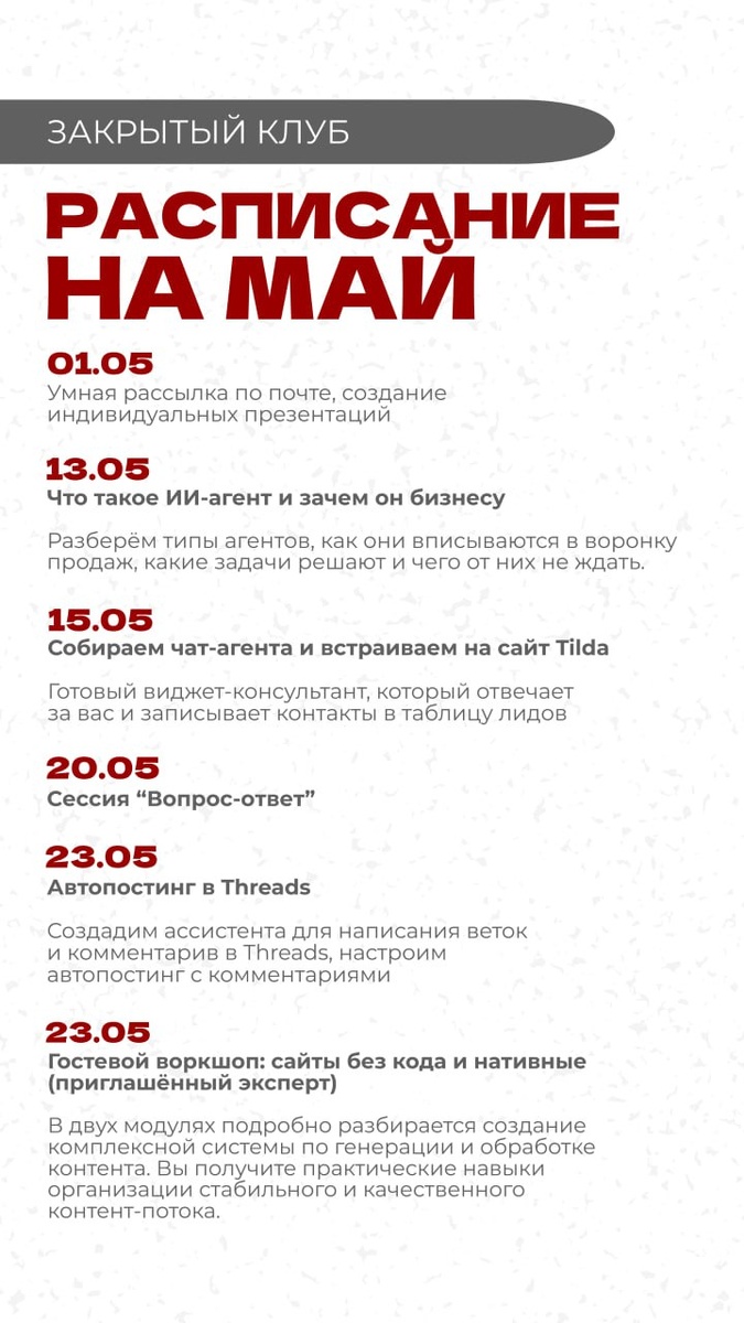 Подготовка к вебинару это хорошо, но и про клуб я конечно же не забываю 😁 В этом месяце программа на 70% составлена с помощью учеников. Я провел опрос и выяснил, какие темы наиболее актуальны и интересны для них, внес их в расписание 🔥 Сегодня в 19:00 занятие, вы успеваете присоединиться! ➡️ Закрытый клуб по работе с автоматизациями ➡️ Программа обучения в закрытом клубе ➡️ Реферальная программа для участников клуба