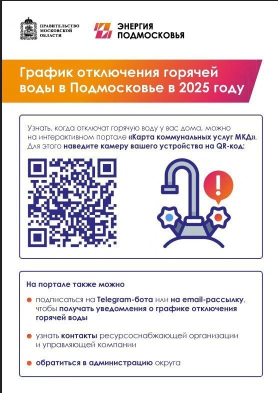 🚰Плановое отключение горячей воды началось в домах Люберец. ❗️В г.о. Люберцы в рамках подготовки к отопительному сезону 2025/2026 с 13 мая началось плановое отключение горячего водоснабжения. 🔧В течение 10-14 дней специалисты проводят наладку теплового оборудования, меняют неисправные элементы котельных. Все эти работы позволяют избежать серьезных аварий в отопительный период. По ряду адресов система позволяет проводить диагностику без остановки котельных. Ознакомится со сроками планового отключения горячего водоснабжения в МКД можно: 🔵на общедоступном интернет-ресурсе «Карта коммунальных услуг МКД»; 🔵на сайте администрации: люберцы.рф. 🔵в телеграм-боте «Плановые отключения МО». #Люберцы @VM_Volkov
