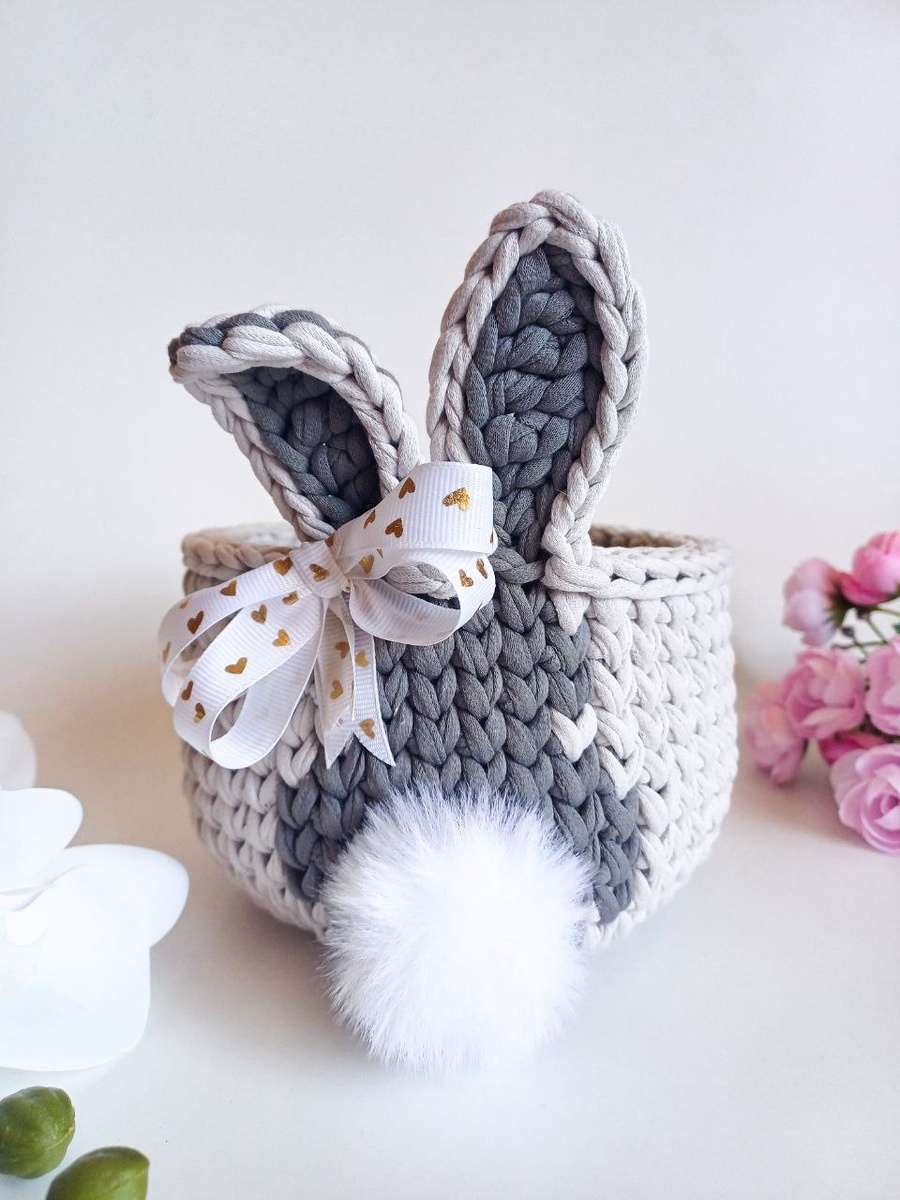Корзинка Зайчик🐰 из трикотажной пряжи.