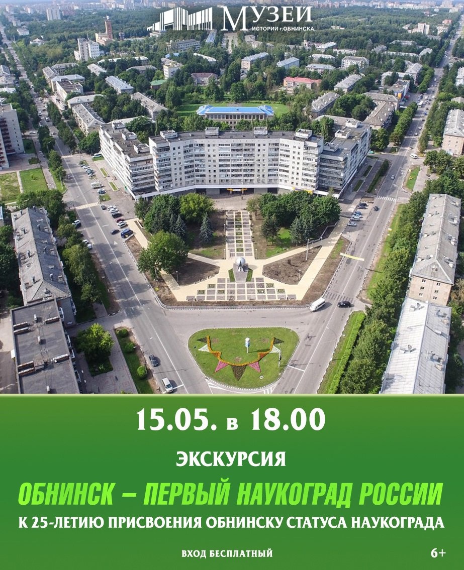 ⚡15 мая в 18:00 в Музее истории города Обнинска состоится экскурсия «Обнинск — Первый наукоград России» к 25-летию присвоения Обнинску