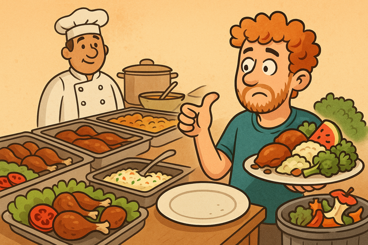 — Это точно говядина? А может, верблюд? Я решил разобрать самые популярные мифы про шведский стол в отелях. Некоторые — полный бред. А кое-что, возможно, вас удивит. Особенно если вы думали, что всё недоеденное отправляется в приют или обратно на сковородку. Легенда гласит: в 11 закончился завтрак, и повара такие: «Так, быстро! Через два часа кормим тысячу человек!» Правда в том, что кухня в отеле — это конвейер размером с небольшой завод. На каждую смену — заранее составленный график, логистика, заготовки, ночные поставки, чёткие тайминги.