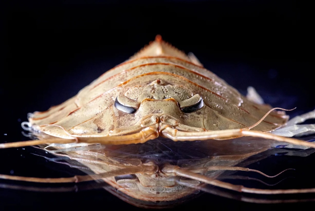 Австралийский научно-исследовательский ледокол «Нойина» (Nuyina) вернулся из экспедиции с любопытной живностью, собранной в водах у антарктического ледника Денмана – этакой ледяной реки длиной 110 км и шириной 11–16 км, заполонившей самый глубокий материковый каньон на Земле, 3500 метров ниже уровня моря. Подтекающая под Денман теплая вода плавит лед, в результате ледник подтаивает с угрожающей скоростью, и если/когда он растает полностью, то уровень моря на планете повысится на полтора метра. Прощай, Нью-Йорк, Шанхай, Амстердам... И здравствуй, изопода-трилобит, морская хрюшка, рыбка-белокровка! Изопода Ceratoserolis trilobitoides и ее усталый взгляд: самки этого вида почти два года вынашивают потомство в выводковой сумке, так что неудивительно. Изопода Ceratoserolis trilobitoides, вид сверху: им она наглядно обосновывает свое имя – «трилобитоподобная». Хищный бокоплав Eusirus perdentatus, любитель полакомиться другими бокоплавами и прочими мелкими рачками, а также полихетами и всякой