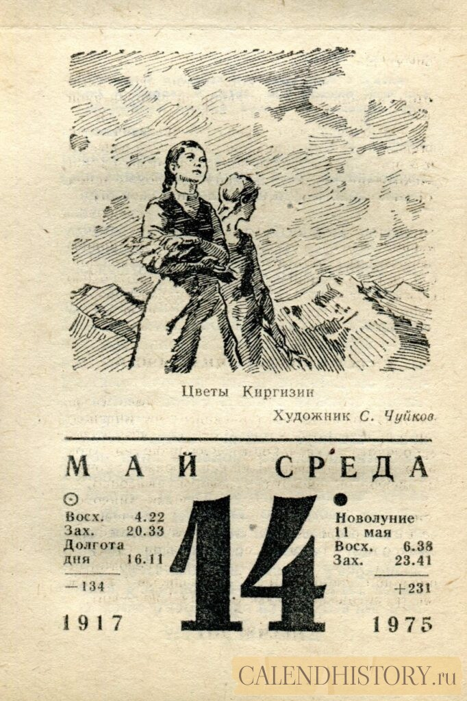 Итак, сегодня 14-го мая и у нас на календаре 1975-й год. Перед нами листок советского календаря для женщин.