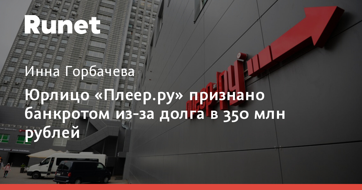 Юрлицо «Плеер.ру» признано банкротом из-за долга в 350 млн рублей