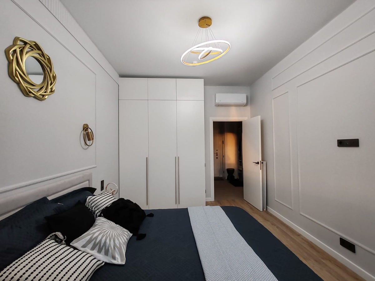 Чтобы подчеркнуть этот стиль, вот несколько рекомендаций: 1. Цветовая палитра: Для сохранения классического стиля выбирайте нейтральные тона для стен и текстиля. Белый цвет шкафа отлично сочетается с пастельными оттенками, такими как светло-бежевый, нежно-голубой или мятный. 2. Декор: Добавьте элементы декора, такие как картины в классических рамках, зеркала с декоративными рамами или вазы с цветами. Это создаст уютную атмосферу и подчеркнет элегантность. 3. Освещение: Рассмотрите возможность выбора стильных светильников. Люстры с хрустальными элементами или настенные бра в классическом стиле могут дополнить общий вид комнаты. 4. Мебель и текстиль: Выбирайте мебель с плавными линиями и изысканным дизайном. Ткани для штор и обивки мебели могут быть выполнены из натуральных материалов, таких как лен или хлопок, с легкими узорами или однотонными. 5. Акценты: Используйте матовое золото не только в ручках шкафа, но и в других элементах интерьера, таких как рамки дл