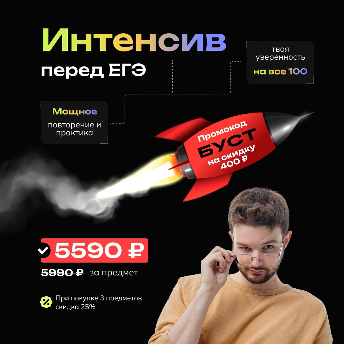 Не успели на Интенсив до повышения? Держите промокод БУСТ на -400 рублей 🚀 В конце года все жутко заняты и не всегда помнят про домашки и пробники, не то что про акции. С промокодом БУСТ курс можно купить почти по прежней цене до 22 мая 🌝 Интенсив по русскому — это: — 4 дня вебинаров: занимаемся утром и вечером по 3,5 часа — Повторение теории + практика теста и сочинения — Пробники с подробной проверкой — Короткометражки и конспекты по всей теории — Чилловый созвон со мной после вебов — Чат с методистом по любым вопросам и помощь с апелляцией — Разбор Дальнего Востока — Шпоры по всем темам 🤙 Стартуем 22 мая! Осталось 9 дней: https://nfml.ru/intensive2025