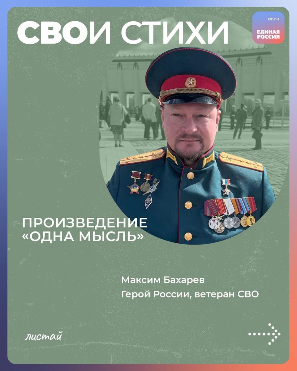 Фронтовая поэзия и проза — спутники бойцов на любой войне. Все мы знаем с детства стихи о войне Алексея Суркова, Давида Самойлова, Александра Твардовского, Анны Ахматовой, Константина Симонова и других авторов. Многие из них положены на музыку и стали песнями — символами культуры тех лет. Мы начинаем рубрику, в которой знакомим вас с авторами, которые пишут о специальной военной операции. Открывает её Герой России, ветеран СВО Максим Бахарев. Его перу принадлежит сборник военных стихотворений и песен «ZAVтра». Публикуем произведение «Одна мысль».