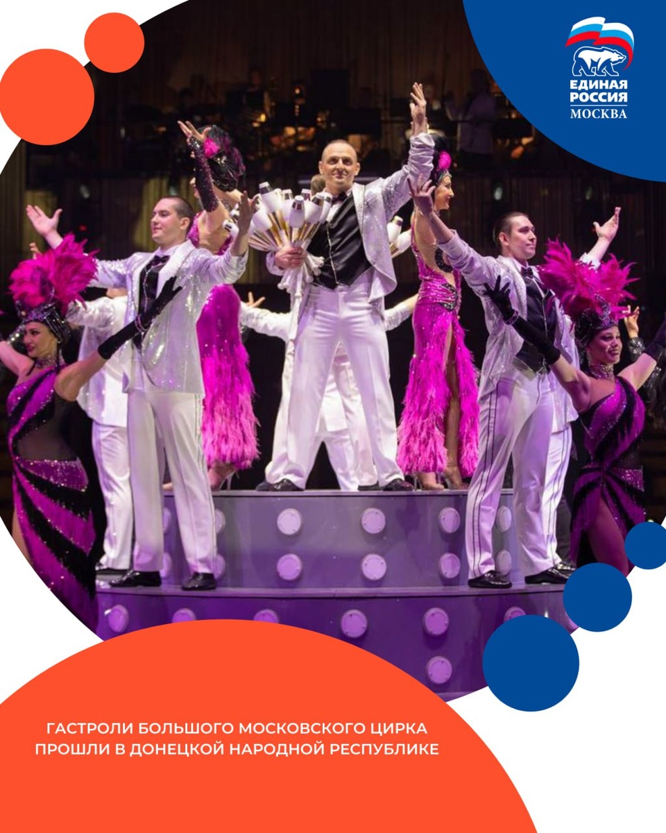 ⚪️Гастроли Большого московского цирка прошли в Донецкой Народной Республике. 🩵С 27 апреля по 11 мая в Донецком государственном цирке «Космос» прошло яркое шоу под названием «И100РИЯ», которое собрало почти 44 тысячи зрителей. На манеж вышли 100 талантливых артистов, готовых удивить публику. ⚡️Представление стало увлекательным путешествием во времени, позволяя зрителям увидеть эволюцию циркового искусства от бродячих трупп XIX века до современного цирка. В программе выступали акробаты, жонглеры и дрессировщики животных, которые продемонстрировали мастерство и смелость. 💠Для братьев Эдгарда и Аскольда Запашных гастроли в Донецкой Народной Республике (ДНР) имеют особое значение, так как это место связано с их детством. Отец артистов, Вальтер Запашный, очень часто приезжал с выступлениями в Донбасс. 💙Благотворительный характер гастролей также был значим — все собранные средства от продажи билетов пойдут на развитие Донецкого цирка. Гастроли стали не только возможностью насладиться у