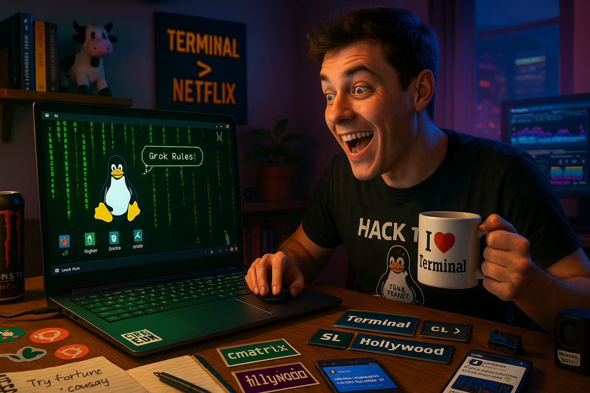Кто сказал, что терминал Linux — это только скучные команды и системные настройки? На самом деле, это настоящая площадка для веселья, где можно почувствовать себя хакером, художником ASCII-арта или даже укротителем виртуальных котиков. Забудь на вечер про сериалы — я собрал 10 команд, которые покажут, насколько терминал может быть крутым и увлекательным. Каждая — с простым объяснением и примерами, чтобы даже новичок мог запустить и удивиться. Погнали открывать магию Linux!