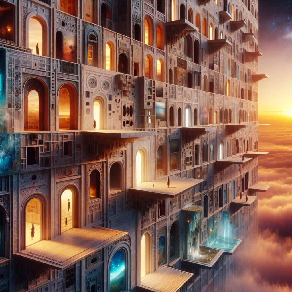 На обрыве, где заканчивается логика, стоит здание с бесконечным числом дверей. Внутри — не комнаты, а возможные жизни. Посетитель заселяет только одну, но ему разрешено взглянуть сквозь глазок в любую другую. Рядом живут версии его будущего: художник, забытый отшельник, революционер, преступник, бессмертный, счастливый отец, тот, кто никогда не был рождён. В гостинице никто не остаётся навсегда — уходят к утру, просыпаясь в «той» своей жизни. Но поговаривают, если остаться слишком долго, гостиница решает за тебя, какую судьбу закрепить навечно.