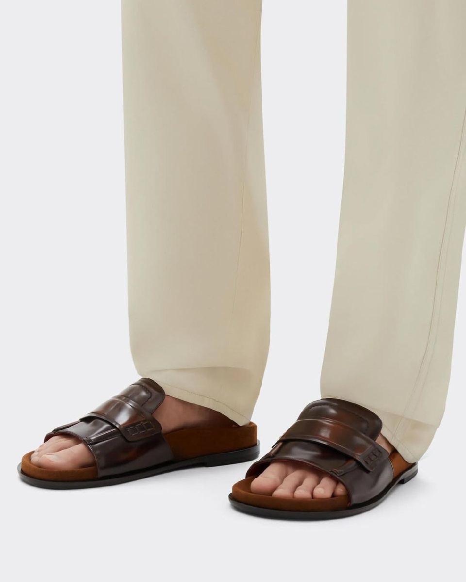 У нас новая незаконнорожденная обувь. Ferrari скрестили лоферы и тапки. Есть что-то даже вроде педали под пяткой.