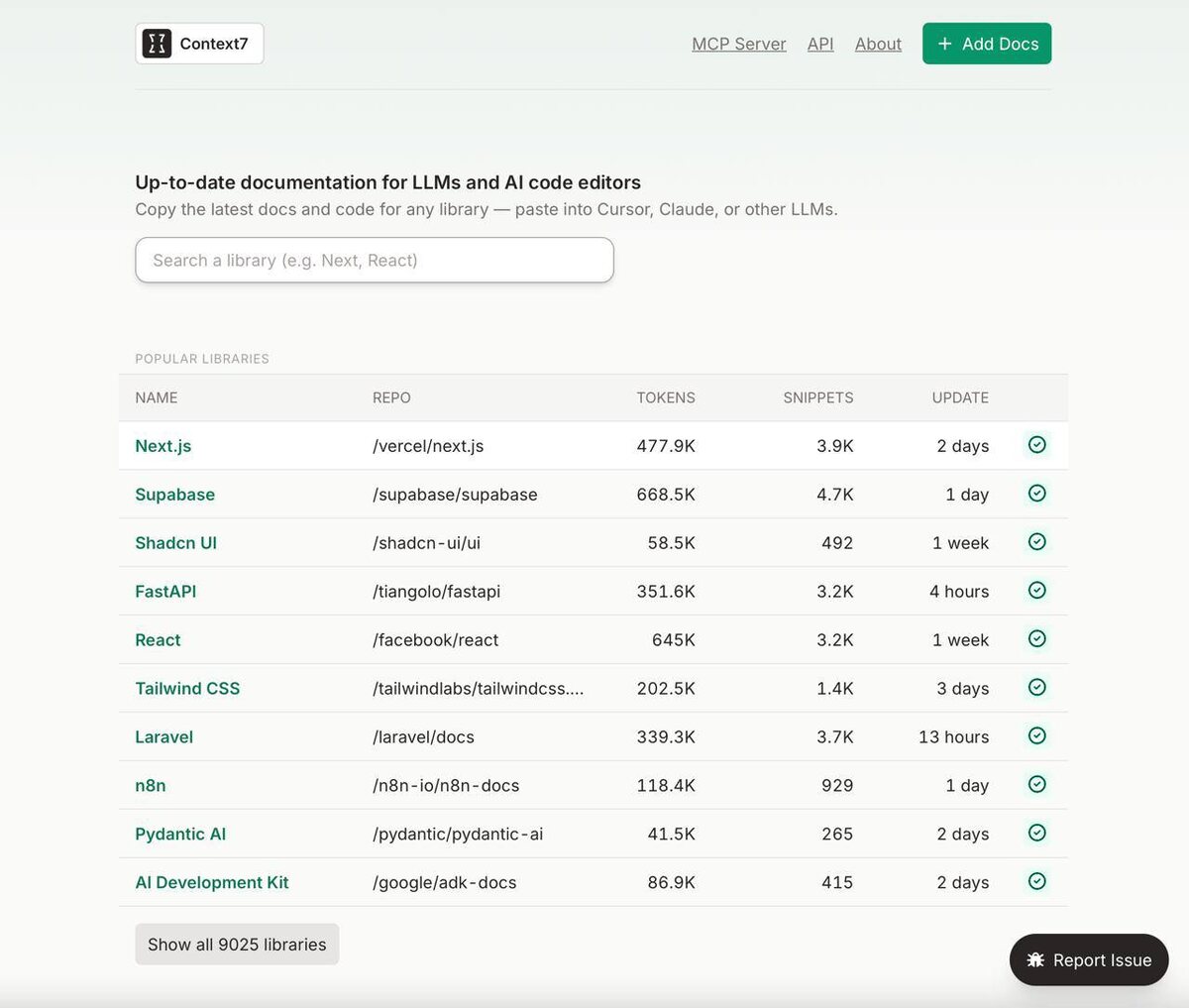Сохраняйте базу из 9 тысяч API под любые задачи — тут есть вся документация для подключения к любым нейронкам и сервисам • В базе собрали актуальную документацию ко всем популярным нейросетям — так можно уменьшить количество галлюцинаций при использовании. • Авторы обновляют список апишек каждый день. • Поддерживает Cursor, Windsurf, VS Code, Docker, Claude. Можно установить себе на комп — тут. Если лень, можно копировать данные вручную с сайта.