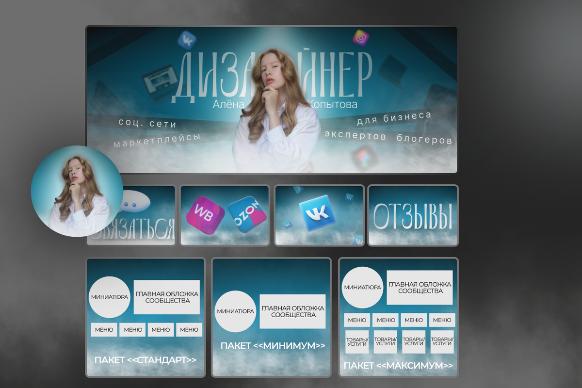 Всем здравствуйте! Меня зовут Алёна Копытова. Дизайнер. Я занимаюсь дизайном сообществ и личных страниц во ВКонтакте. В моём портфолио больше 20 проектов из разных ниш: студия красоты, магазин одежды, магазин электроники, эксперты в разных нишах и не только. Мои рекомендации сформировались на основе моего опыта и анализа. Сегодня я хочу поделиться чек-листом, который точно поможет вам в оформлении сообщества. В статье я подробно расскажу про каждый пункт и в конце дам ссылку на файл, чтобы он всегда был у вас под рукой. Если вы не хотите самостоятельно заниматься оформлением сообщества, так как это занимает много времени и нужно сделать всё качественно, тогда напишите мне https://id.vk.com/account/#/main . Я подробно ознакомлю вас с ценами, тарифами и отправлю своё портфолио. Итак, поехали Оформление сообщества настраивается в разделе управления, в настройках. Есть два варианта: мобильная (1080×1920) и для ПК (1920×768). Детали каждой обложки должно быть хорошо видны. Для бизнеса хор