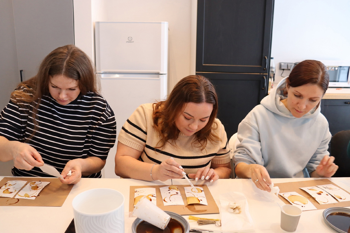 Встреча для мам «Авторская поэзия и кофейная живопись» состоялась в Кудрово. «Стопроцентное попадание в душу», «Волшебно, аж до слёз...», «Чувственно, до мурашек!», – так отзываются о минувшей встрече девушки, которые пришли на выходных в муниципальную библиотеку и поработали со своим бессознательным при помощи творчества. Гостьи раскрыли своё внутреннее «я» через рисование, стихотерапию и анализ метафорических карт. Вместе с постоянной ведущей мастер-классов семейного клуба «Свои» Людмилой Левицкой участницы смастерили оригинальные закладки для книг. Основной рисунок выполнялся кофейным раствором, а далее – полёт фантазии. У кого-то абстрактное изображение превратилось в сову, у кого-то – в космические дали, цветы и целые пейзажи. Литературную тематику развила поэтесса и психолог Екатерина Кручинкина. Свои первые терапевтические стихотворения она написала четыре года назад, а сейчас у неё опубликовано уже более 200 произведений. «Стихи позволяют нам поднять из глубин свои чувства», –
