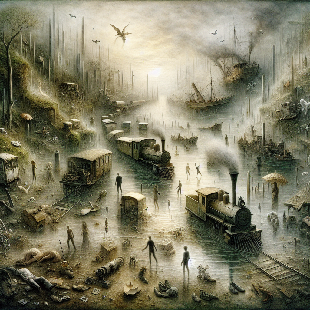Мир, в который попадают все вещи и люди, потерянные навсегда. Это не смерть, а отсутствие: здесь живут исчезнувшие поезда, забытые корабли, столь же забытые лица. Всё застыло в полушаге между состояниями. Цвет здесь — тусклый, запахи — как в старой коробке с письмами. Собачка, потерянная в детстве, и письмо, которое не дошло, — здесь рядом. Люди чувствуют, что кто-то зовёт их по имени, но голос всегда доносится на секунду после того, как слова закончились. Некоторые осознанно приходят сюда — стать частью чего-то, что не имеет завершения.