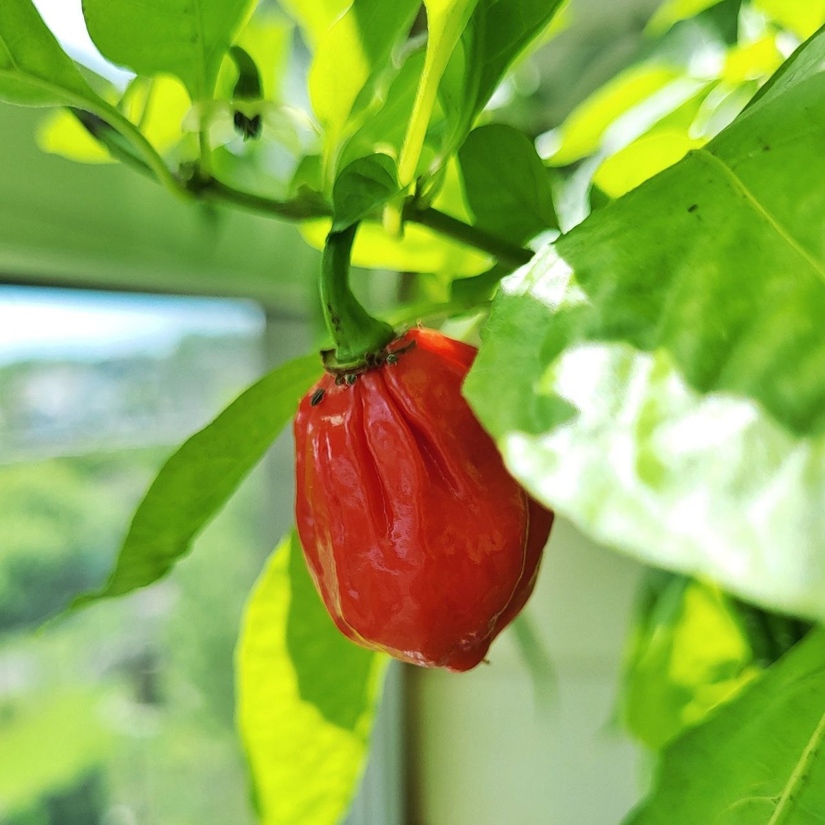 🌶 В оранжерее на балконе созрел первый в 2025 году перец хабанеро