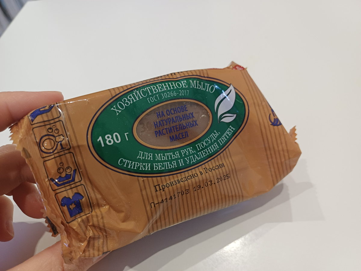 Всем привет! Продолжаю отбор мыла на пользование в мае. Давайте посмотрим! Первым покажу старый добрый хоз от ЭФКО: Раньше это мыло было полосочками и пахло семечками, теперь его структура другая... Но зато какой штамп: А по структуре в разрезе смотрите: Прежних полосочек нет, но мыло все равно славится хорошим качеством и приятным запахом. Далее посмотрим противоположность по структуре АИСТ: Мыло имеет запах "коровки" как я называю) Для меня очень приятный. Классические полосочки от Аиста)) Смотри дальше: заказала с маркетплейса хозяйственное мыло Nefis Мыло имеет приятный запах, не "вонючка". По запаху отличается от хоза в упаковке 72%. Глубокие четкие штампы. Режется "стеклянно". Сухое. Беру в первый раз (как и Nefis) в пользование хозяйственное мыло БытХимУрал: Пока не намочила - запах нейтральный. Буду проверять в пользовании. А пока посмотрим в разрезе: Брусок мягкий, хотя ему уже 3 года точно. Далее хочу показать безымянный хоз: Меловой по структуре, вкусно пахнущий известкой: Ч