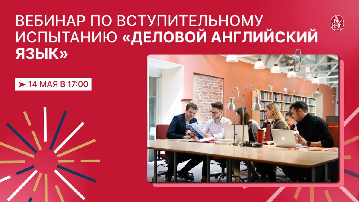 💬 Планируете поступать в магистратуру ВШМ СПбГУ в этом году? Не пропустите трансляцию вебинара по вступительному испытанию «Деловой английский язык»! О чём поговорим? ➡ Что вас ждет на вступительных испытаниях ➡ Критерии оценивания ➡ Типичные ошибки абитуриентов ➡ Как получить перезачёт экзамена «Деловой английский язык» ➡ Где найти примеры заданий и полезные материалы Особое внимание уделим структуре экзаменов. Присоединяйтесь завтра, 14 мая, в 17:00!