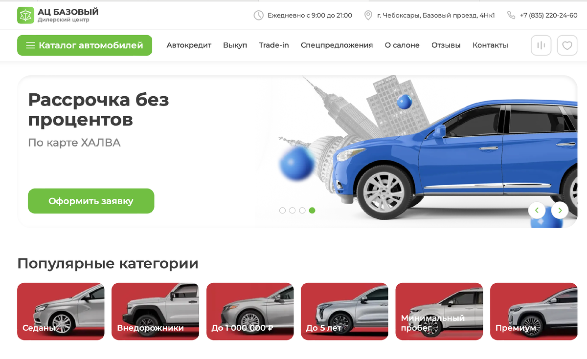 Мы рассмотрим сравнительно недавно открывшийся салон под названием «АЦ Базовый», находящийся по адресу Чебоксары, Базовый проезд, 4Нк1. Для рядового покупателя, потенциального клиента работает активная реклама, представлен широкий ассортимент автомобилей, всевозможные скидки, акции. Людям предлагают как новые машины, так и с пробегом. Мультибрендовый салон располагает широким выбором марок.