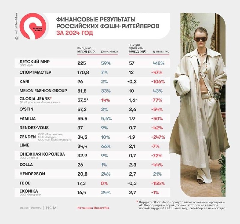 2024: Год без прибыли? Фэшн-ритейл подвёл итоги 2024 — и цифры говорят громче слов. Да, выручка у многих выросла. Но чистая прибыль либо стагнирует, либо ушла в минус. По данным Rusprofile: • O’STIN: прибыль –54% • Спортмастер: –47% • Familia: –50% • TBOE: –155% • Kari и вовсе в минусе • Gloria Jeans — выручка –14%, прибыль –77% 📌 Рост оборота — не рост бизнеса. Это просто инфляция + инерция от прошлых лет. Почему так? 1. Зима без сезона — тёплая погода убила продажи одежды и обуви 2. Кредитные костыли больше не работают — ставки высокие, перекредитоваться невозможно 3. Маркетплейсы забирают всё — трафик, чеки, покупателей. E-commerce стал базовой моделью Что дальше? 💰 На депозитах у населения — 57,9 трлн рублей. Это больше 28% ВВП. Как только начнёт снижаться ключевая ставка — эти деньги снова пойдут в оборот. Вопрос: готов ли ты к этому моменту? Вывод для селлеров: Сейчас не время гнаться за объёмами. Сейчас время: — строить лояльность к бренду — разбирать аналитику — фи