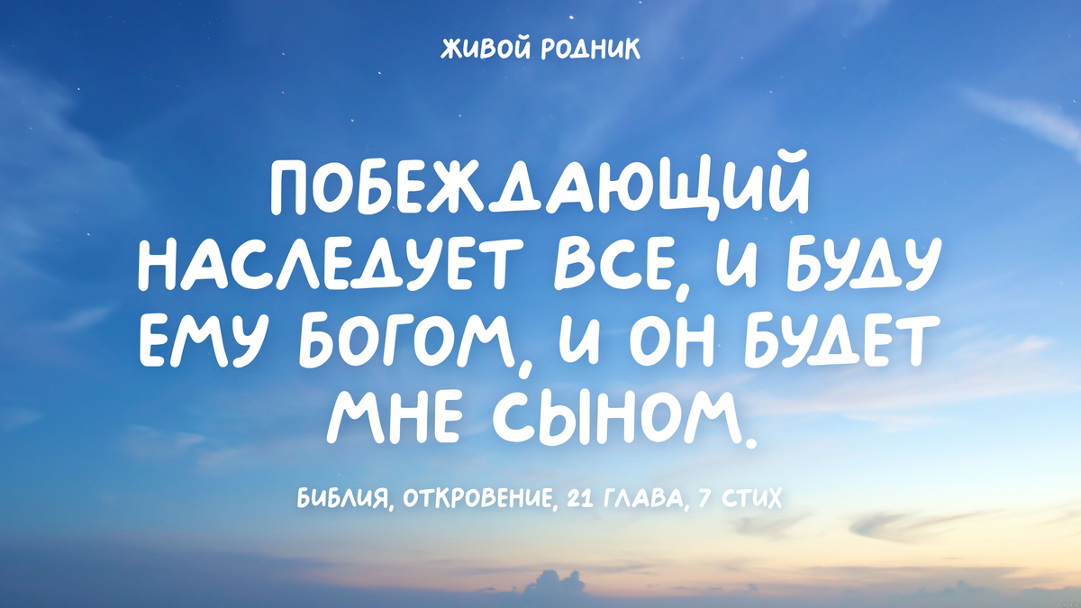 Итак не оставляйте упования вашего, которому предстоит великое воздаяние. Библия, Евреям, 10 глава, 35 стих Не будем смущаться от всего того, что сегодня происходит вокруг нас, так как у Бога одна цель: остановить всякого человека, кого Он так сильно возлюбил и помиловал, на путях широких, путях, ведущих в погибель, и направить на путь Истинный, ведущий в Жизнь Вечную. Входите тесными вратами, потому что широки врата и пространен путь, ведущие в погибель, и многие идут ими... Библия, от Матфея, 7 глава, 13 стих Бог желает сегодня, чтобы в жизнь нашу пришла трезвость, чтобы нам оставить всякую похоть и желание греховное, и возродить, и оживотворить Божий Дух в каждом человеке. Сегодня непростое время; Библия говорит нам, что будет ещё сложнее, но всех, кто любит Бога и надеется на Него, это не пугает: они знают, что Очи Господа обращены к праведным, и Он слышит вопль их! Поэтому укрепимся сегодня Господом и Силою Его, ибо только побеждающий сможет наследовать всё! Это и Жизнь Вечная, и