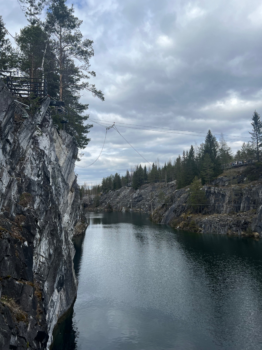 Если вы хоть раз думали что посмотреть в Карелии или какие природные достопримечательности там есть, то точно слышали про Горный парк Рускеала. Он является визитной карточкой республики и добраться до него из Петербурга проще всего не только на личном автомобиле, но и на поезде или каком-нибудь автобусном туре.