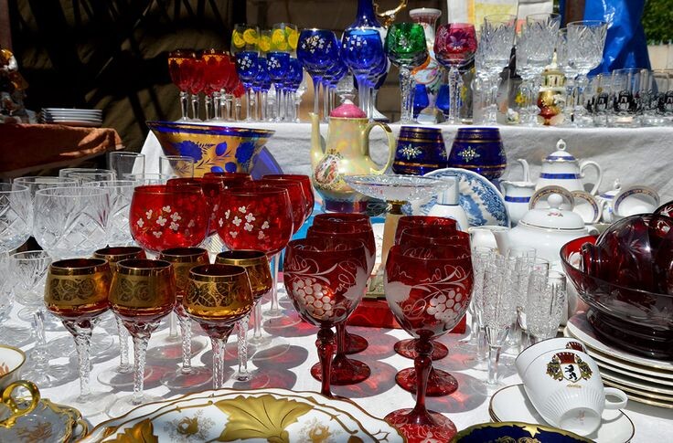 Посуда, стекло и хрусталь. Да, снова и снова говорим об избыточности, а также о минимализме в дизайне интерьеров. Подумайте, так ли вам нужны стеклянные фигурки. Или массивные хрустальные вазы, служившие мерилом богатства в позднесоветские годы. Или столовый сервиз на двенадцать персон. Тем не менее, сколько людей, столько и мнений. Хотели бы заполучить что-то из перечисленного – вам на блошиный рынок. Что ни говори, посуду и стекло делать полвека и более назад умели. Представьте, как подаете домашним суп из супницы. Пользуетесь соусницами, масленками, селедочницами. Бокалы и фужеры под вино… Вдохновились, друзья? Захотели ли привнести ретро-нотки в свой дом? Неплохая идея, заслуживающая рассмотрения.