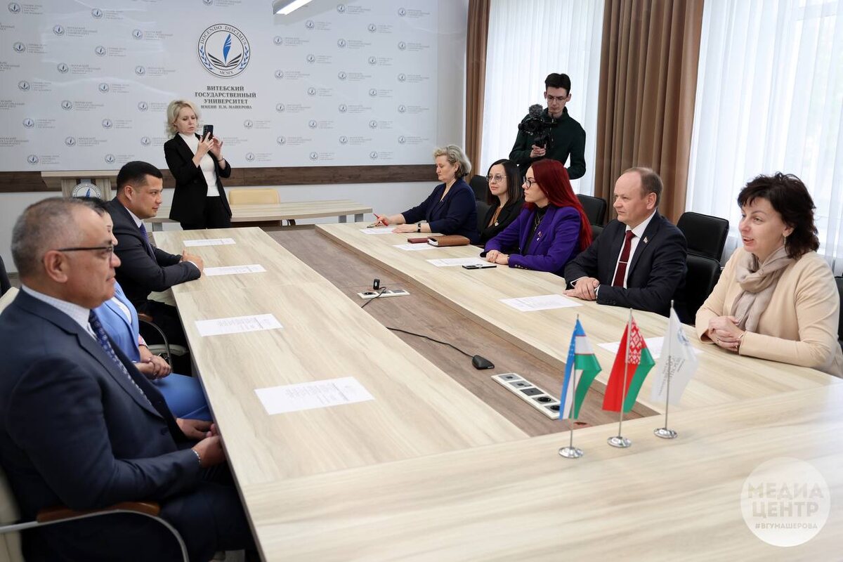 🇺🇿13-го мая ВГУ имени П.М. Машерова с рабочим визитом посетила делегация «GRI Tadqiqot instituti» – официального представителя Витебского государственного университета имени П.М. Машерова в Республике Узбекистан. 🔵Ключевой целью визита стала разработка плана набора граждан Узбекистана для обучения в ВГУ. В этой связи сотрудники «GRI Tadqiqot instituti» провели переговоры с руководством университета и в формате открытого диалога определили векторы международного взаимодействия на ближайшее время. В программу рабочего визита партнеров из Узбекистана также включены: экскурсия по ВГУ имени П.М. Машерова и презентация его научно-образовательного потенциала; общение со студентами; разработка профориентационных материалов. 🤝В завершение официальной части состоялся дружественный обмен сувенирной продукцией. Директор научно-исследовательского института «GRI Tadqiqot instituti» Яшин Исмадияров отметил теплоту приема и радушие белорусских коллег, а также выразил уверенность в том, что обще