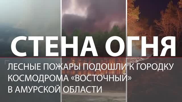 Пожары в Амурской области подошли к городу Циолковский, жители которого работают на космодроме Восточный. До самого космодрома еще 20 км, а вот в закрытом городке огонь подобрался совсем близко домам. Машины в Циолковском перегоняют подальше от наступающего пожара. Как сообщает МЧС, растительность горит на 8 километрах по фронту. Огонь у города тушат более 70 человек и свыше 20 единиц техники. Дым окутал многие населенные пункты области, включая Благовещенск и Свободный. В сети расходятся видео с дорог в огне. 13 мая в Приамурье полыхает 12 пожаров на площади почти в тысячу гектаров, с огнем борются сотни людей. Причина мощных возгораний в пожарном комбо — сушь, сильные ветер и палы травы. В поселке Орлиный был обнаружен пал сухой травы, с ним боролись спасатели, добровольцы и сотрудники администрации района. В селе Талдан пожарные остановили огонь уже у самого забора частного дома. Два дня горел Муравьевский заказник — на месте нашли три сгоревших гнезда японских журавлей, уцелели то