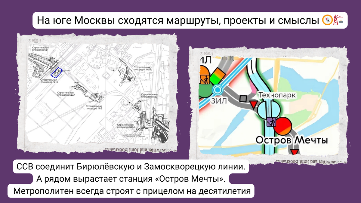 официальные отчеты. Давайте вместе разберемся, что же на самом деле происходит с нашей Москвой. Поехали? Во-первых, показываем 🚇 аерегон «ЗиЛ» – «Остров Мечты» 🏭 Бирюлёвской линии. Конкретнее, смотрим на площадка №2а строительства камер съездов на ССВ (служебной соединительной ветви) на Замоскворецкую линию. Завершено ограждение стройплощадки в створе проспекта Лихачёва. Освоение площадки не начато. Во-вторых, окинем взором активные работы на 🚇 станции «Остров Мечты» и 🚇 перегоне «ЗиЛ» – «Остров Мечты» 🏭 Бирюлёвской линии 📷 2.1-2.2: Активные работы по стене в гр