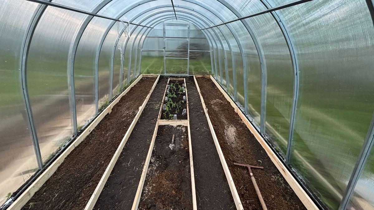 Арочная Теплица 6х3: Один сезон — множество возможностей Теплица — это настоящий помощник для садоводов и огородников, позволяющий продлить сезон выращивания растений и обеспечить им оптимальные условия. В том году я испытал свою теплицу размером 6х3 метра, сделанную из поликарбоната, и готов поделиться своими впечатлениями на основании моего небольшого опыта в земледелии. Плюсы теплицы 1. Простор и функциональность: С размерами 6х3 метра, теплица предоставляет достаточно пространства для размещения трех грядок: две шириной 70 см и одна — 50 см. Это позволяет организовать разнообразные посадки, от овощей до цветов. 2. Качество материалов: Поликарбонат — это отличный выбор для теплицы. Он обеспечивает хорошую светопроницаемость и защищает растения от ультрафиолетового излучения. В этом сезоне поликарбонат проявил себя как надежный материал, который не потерял своих свойств даже при сильных перепадах температур. Но пока он новый и сейчас только второй сезон, ещё все впереди так сказать.