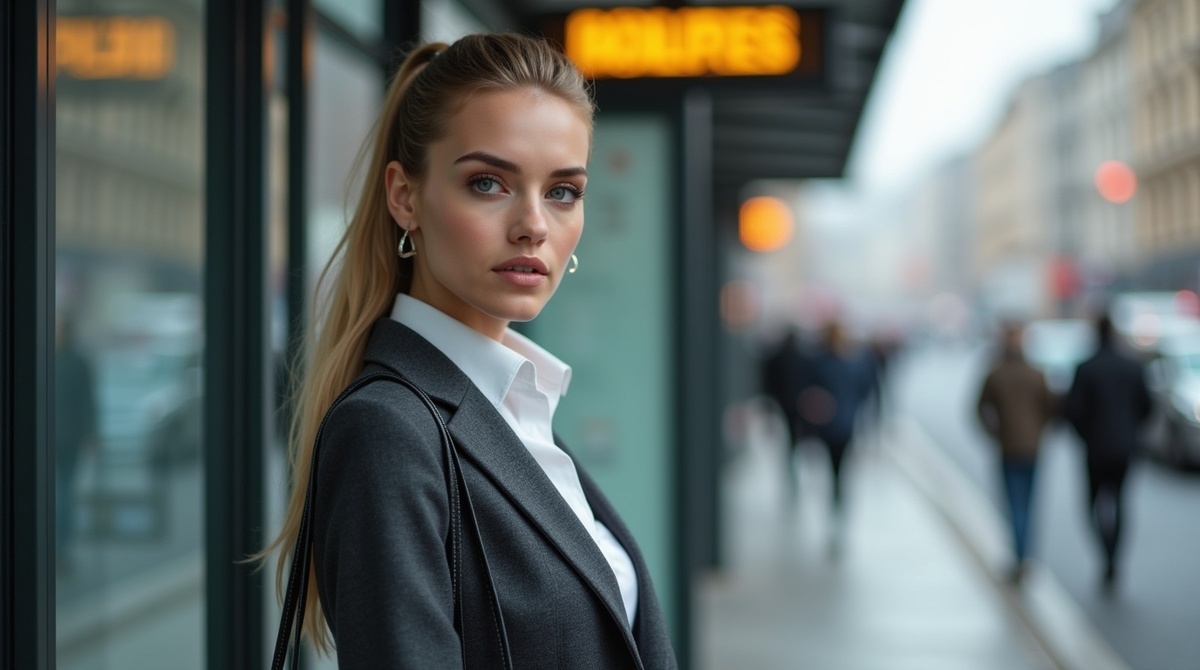 В день концерта Лариса выглядела особенно красиво — в строгом тёмно-синем платье, с волосами, убранными в элегантную причёску. Она стояла за кулисами, нервно перебирая листок со стихотворением.