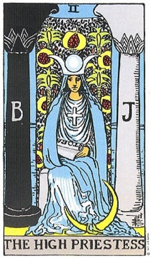 - женщина, которая интересуется вопрошающим. Верховная Жрица символизирует все бессознательное, внутренний духовный мир человека, глубинные скрытые знания, а также понимание Высших истин через сны, интуицию, телепатию и т.д. В ногах Жрицы находится полумесяц – символ тайны и в то же время цикличности всех происходящих в мире процессов. На свитке в ее руках начертано священное слово «Тора», то есть Высший, Тайный, Священный закон.